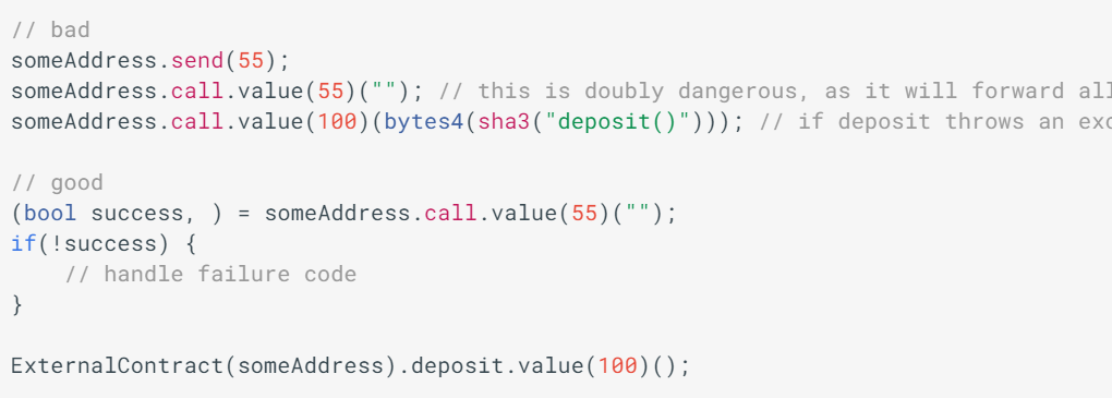 This page demonstrates a number of patterns which should generally be followed when writing smart contracts.